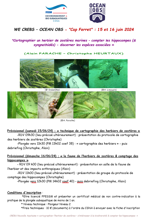 "Cartographier un herbier de zostères marines – compter les hippocampes (& syngnathidés) - discerner les espèces associées »